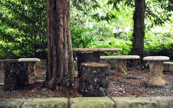 Our hotel park is a lot of fun: there's a barefoot trail, a large swing, a Japanese pavilion. We've created small, comfortable nooks all over the park to curl up in and read a book or relax.