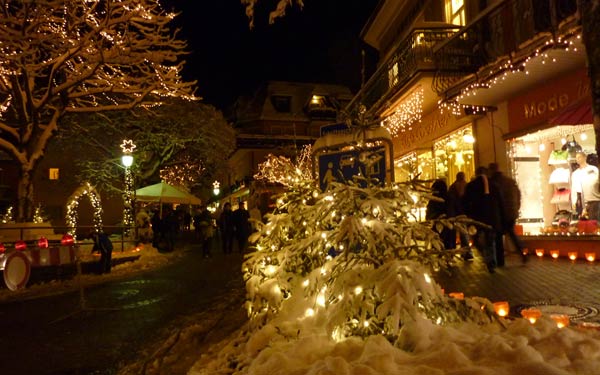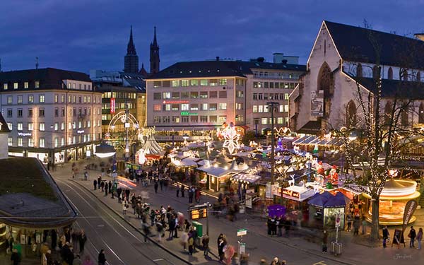 "Europas längste Weihnachtsstraße" liegt in Basel, der Weihnachtsmarkt in der historischen Altstadt ist wunderschön romantisch. Von Ihrem Hotel zum Barfüsserplatz sind es über Landstraße nur 37,9 Kilometer (haben wir gegoogelt). Etwas weiter (54,8 Kilometer) ist es ins elsässische Colmar, aber dieser Weg lohnt sich wirklich. Schon im Sommer ist die berühmte Fachwerk-Altstadt mit dem Viertel "Klein Venedig" ein Traum. Mit Weihnachtsbeleuchtung und -flair läuft einem das Herz fast über.
