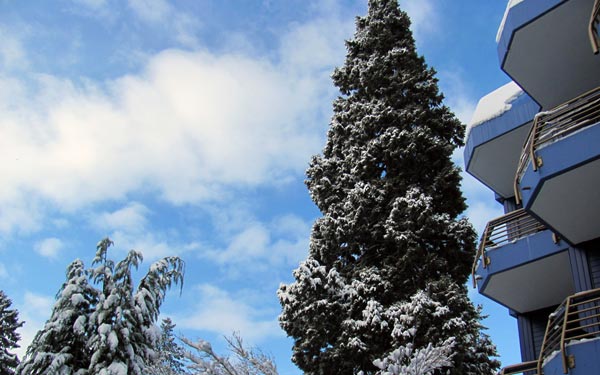 La veille de Noël, notre séquoia de 46 mètres de haut devient un arbre de Noël pour la deuxième fois de ses 160 ans de vie, décoré de manière festive et (espérons-le) avec de la neige sur les aiguilles. A quatre heures, quand il fait nuit et que les lumières de Noël brillent partout, nous sortons ronger. Vous pouvez apporter jusqu'à trois cadeaux, puis vous recevrez autant de cadeaux. Dès 18h, nous vous invitons à un véritable classique au restaurant: la fondue à la viande avec des sauces maison et de délicieux accompagnements. Les boissons au dîner sont - comme tous les soirs - incluses pour vous.