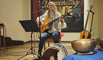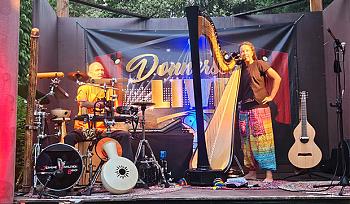 Die Band mit der Harfe - die Jeanine Vahldiek Band verbreitet dank Optimismus und Rhythmus richtig gute Laune. Orchesterharfe, unzählige Percussioninstrumente, Ukulelenbass und Hawaiigitarre verleihen Songs neue Facetten und Energie. Da wirkt das wohlige Gefühl auch nach Konzertende.