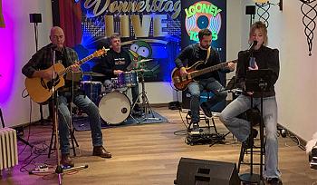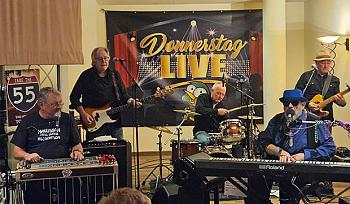 Wie eine ganze Big Band – so klingt es heute. Dabei stehen nur vier Musiker auf der Bühne. Meike König (Gesang), Marius Labsch (Piano), Frank Rihm (Bluesharp) und Andreas Bock (Schlagzeug) spielen gemeinsam Blues, Boogie Woogie und Rock'n'Roll und bringen Hüften zum Schwingen.