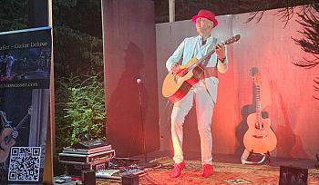Der Mann, der schneller spielt als sein Schatten. Matthias Waßer und seine Gitarre stehen heute auf der Bühne – mehr braucht der Vollblutmusiker nicht, denn das Instrument dient auch immer wieder zur Perkussion oder wird mit einem Cellobogen gespielt. Da steht kein Fuß im Publikum still.