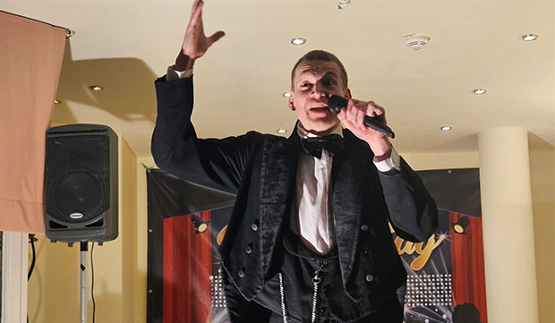 Mehr als 30 Jahre Bühnenerfahrung als Sänger, Musiker und Schauspieler - Showman Sascha Gutzeit entführt Sie für seinen heutigen Auftritt ins Jahr 1895 und berichtet lesend, plaudernd und singend von einem fast vergessenen Kriminalfall. "Der Blaubart aus Horrweiler" wird Sie wachhalten.