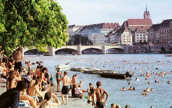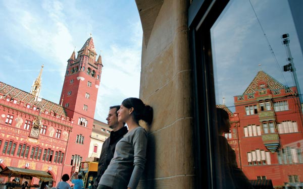 Heimliches Wahrzeichen von Basel ist übrigens der Rhein. Er unterteilt die Stadt in zwei Hälften, in Groß- und Kleinbasel. Sehenswert sind beide Stadtteile. Von dem einen zum anderen Rheinufer gelangen Sie zu Wasser und zu Fuß: Über die Mittlere Brücke schlendernd, der ältesten Rheinbrücke zwischen Bodensee und Nordsee. Oder mit einer von vier Fähren wie vor 150 Jahren, nur von der Rheinströmung vorwärts getrieben. Sie können natürlich auch schwimmend den Rhein durchqueren. Im Sommer ein echtes Muss für Basler und solche, die es mal werden wollen. Nach Feierabend ist die schöne Rheinpromenade jedenfalls der "Träffpunkt" für alle. Ein weiteres Wahrzeichen der Stadt: das Basler Münster. Kunst, Kultur - was fehlt? Shopping! Für kleine Geldbeutel findet jeden Samstagmorgen ein Flohmarkt auf dem Petersplatz statt. Etwas mehr Geld ausgeben können Sie in den vielen Boutiquen am Spalenberg und in den Einkaufsstraßen "Freie Straße" und "Steinenvorstadt". Und falls noch ein paar Rappen übrig sind: Basler Läckerli kaufen, wunderbare viereckige Mini-Lebkuchenguetzli mit feinem Zuckerguss. En guete!