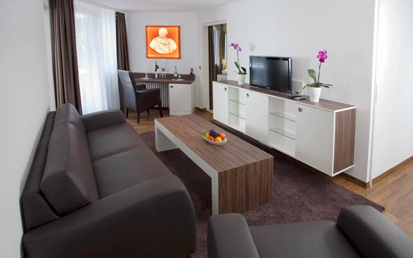 Tout d'abord: vous pouvez également vous permettre notre suite si vous n'êtes ni milliardaire, ni Premier ministre, ni Mick Jagger. Il est aussi unique que son homonyme, l'empereur romain Vespasien. Il a ordonné la fondation de "Aqua villae", plus tard Badenweiler, il y a près de 2000 ans. Nous avons fait l'une des trois chambres précédentes ici en 2011. Vous avez beaucoup d'espace et la plus belle vue de l'hôtel depuis deux balcons.